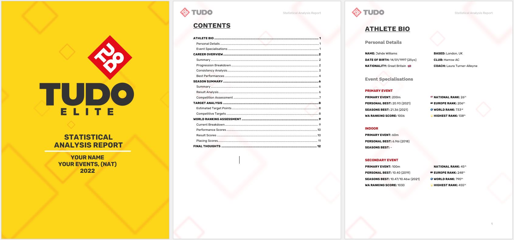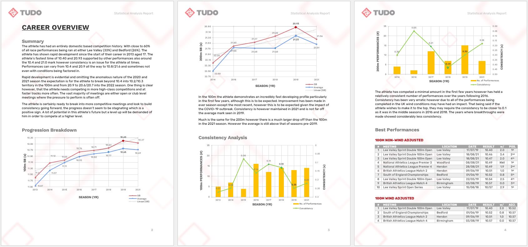 The Tudo team offer the opportunity for you to get a full deep-dive breakdown of your career performances. Our Statistical Analysis Report provides bespoke insight into your career in the sport and we look to make strategic recommendations specific to you from a competitive standpoint.